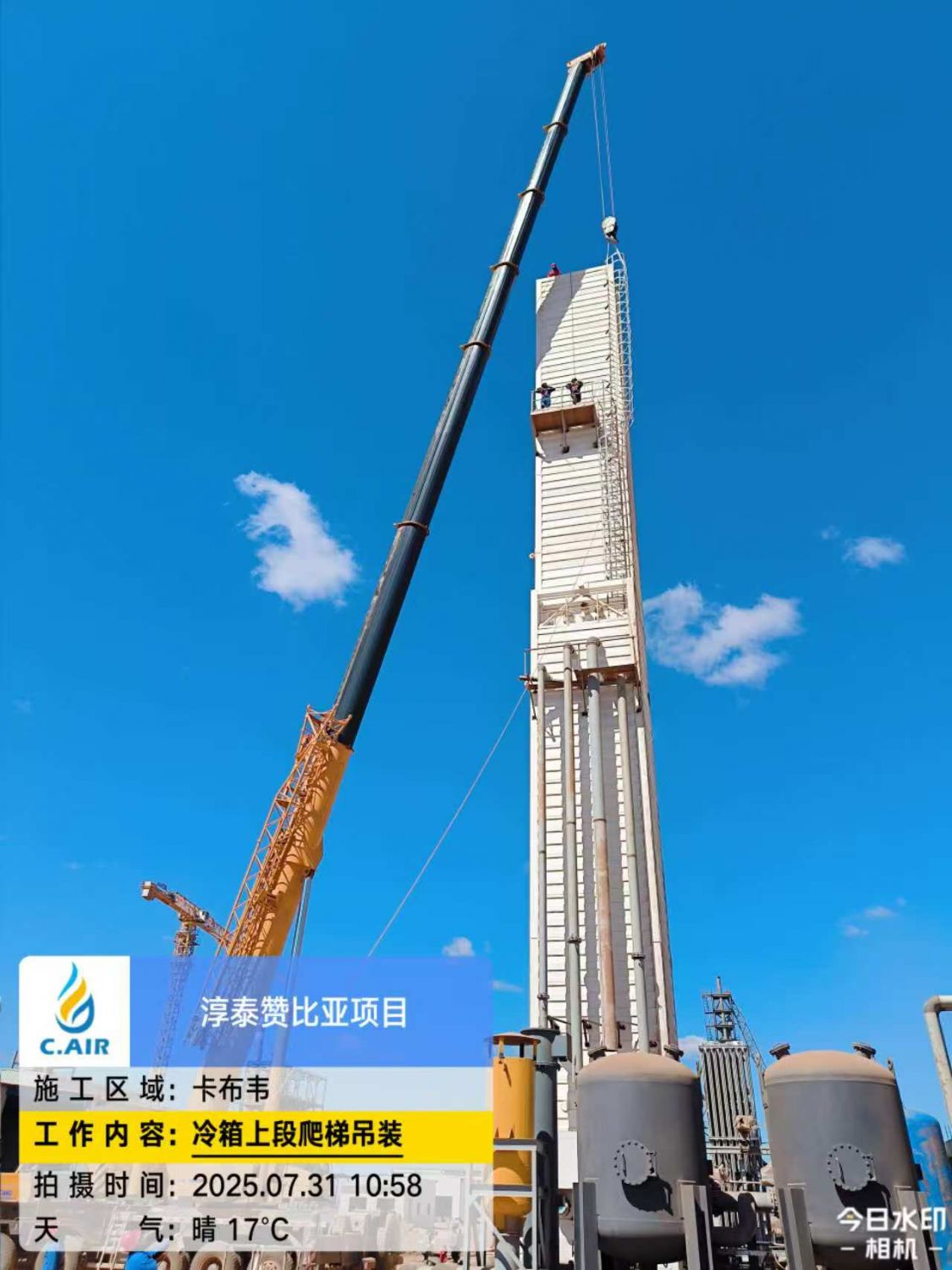 目前,我司承接的贊比亞KDON-2500/2500出口空分項目已全面進入現場安裝關鍵階段。項目團隊正緊鑼密鼓地推進各項工作,確保工程優(yōu)質高效完成。下面是一些記錄現場施工場景的照片: